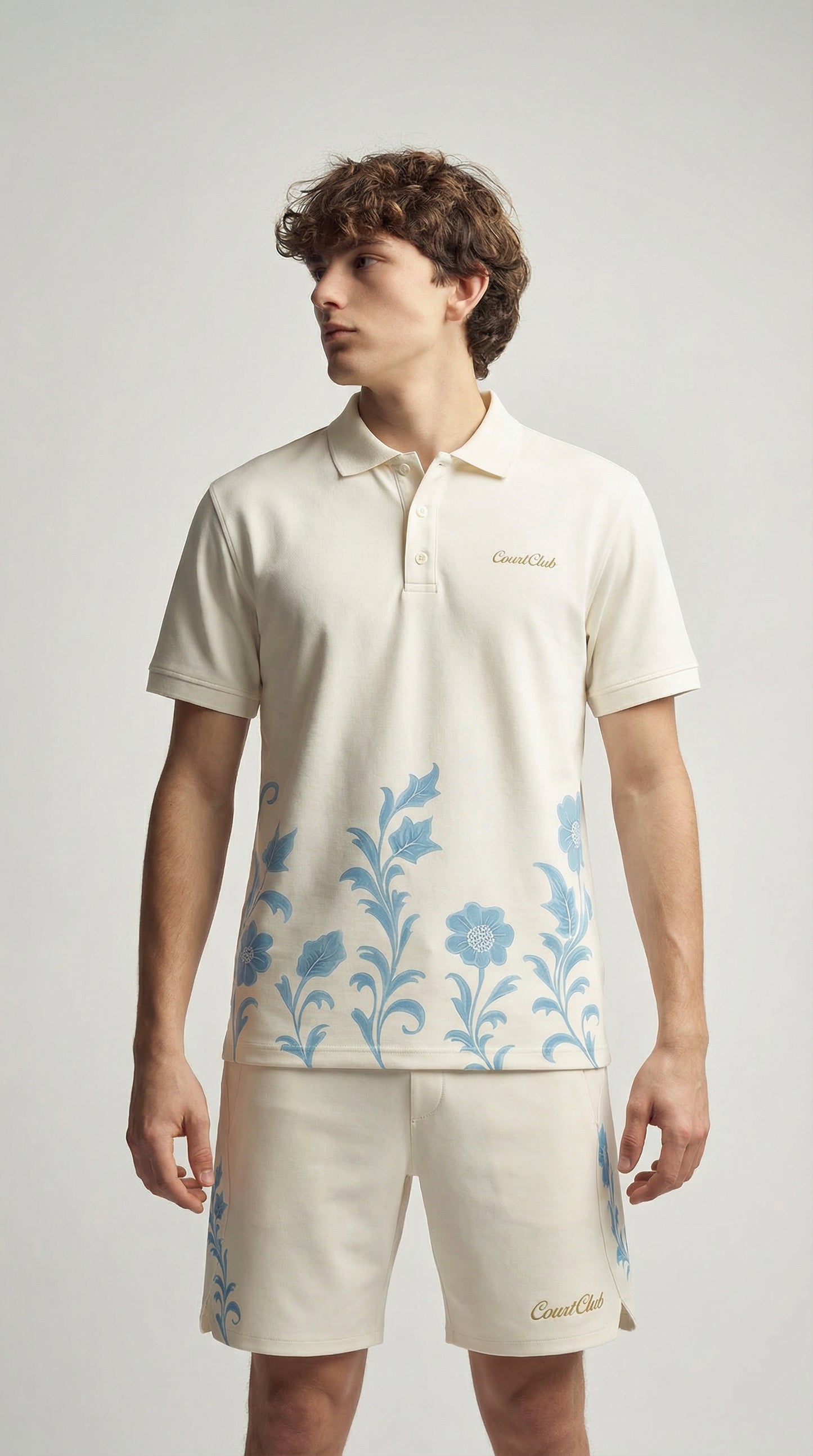 Men's On-Court Poloshirt with Floral