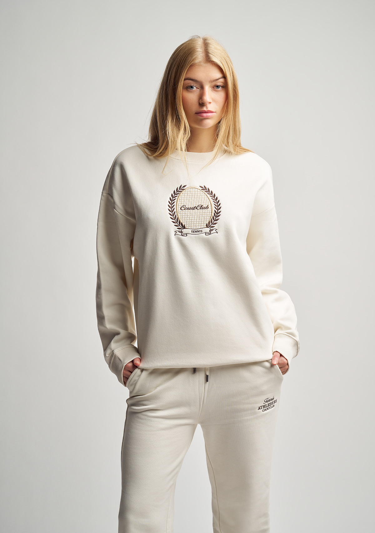 Unisex Ivory Sweatshirt with Racquet embroidery